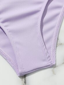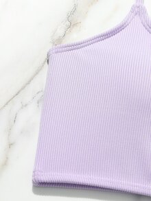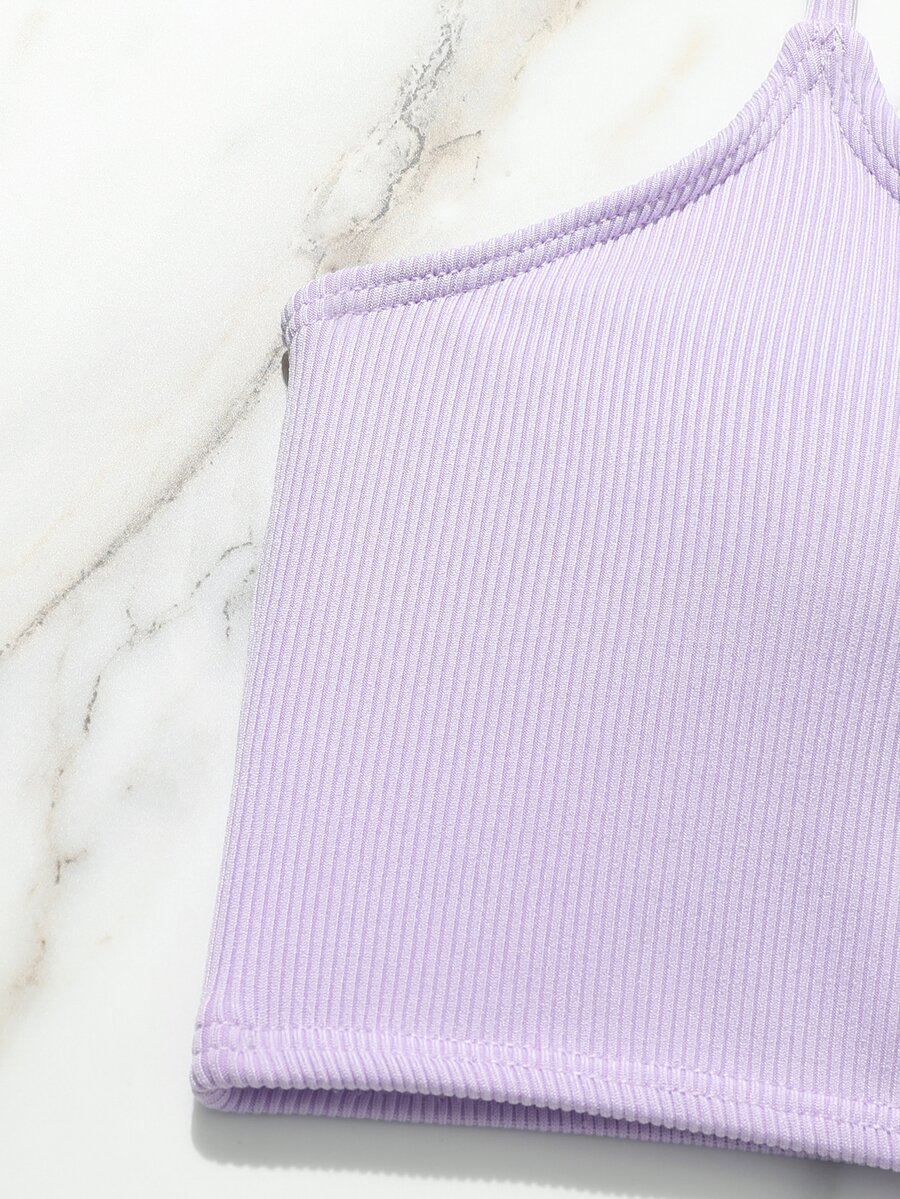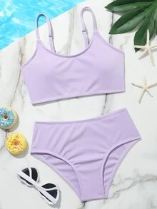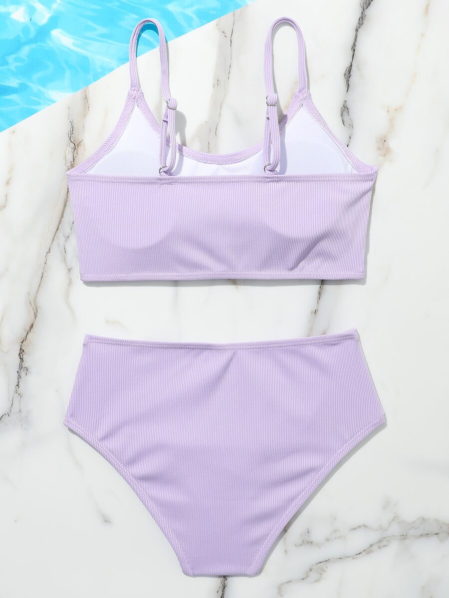 Conjunto de bikini de canalé liso para niña preadolescente, verano playa