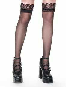 Goth 1 par de medias altas tipo bailarina con adorno de encaje rosa, medias transparentes elásticas con parches de encaje sexy