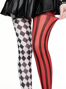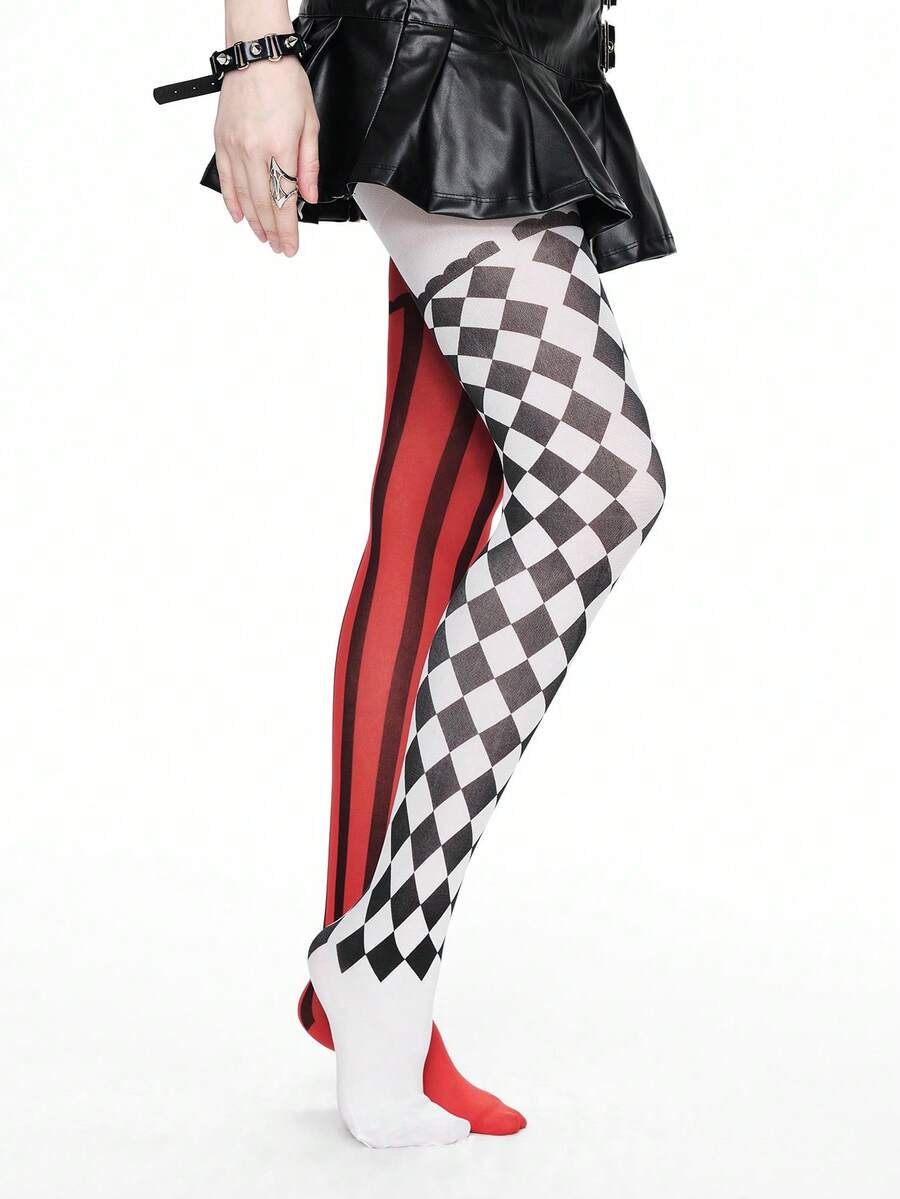 Goth 1 par de medias a rayas en rombo de color negro y rojo de estilo Dark Rock