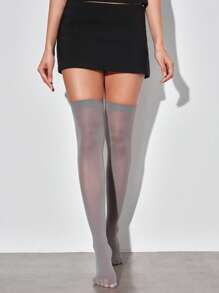 Goth 1 par de calcetines minimalistas por encima de la rodilla, calcetines altos de color gris sólido de estilo escolar, sexys, mallas transparentes elásticas y ultra delgadas