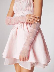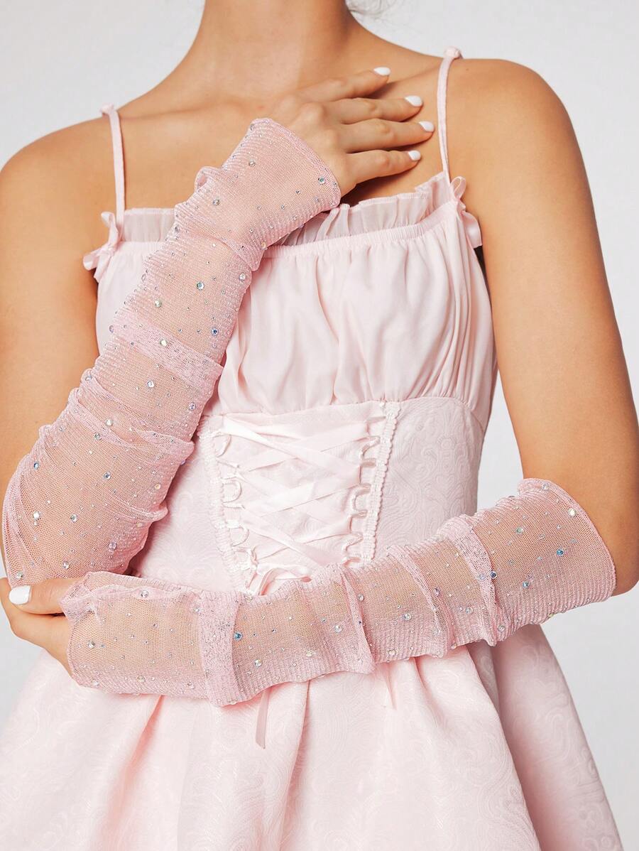 Goth 1 par de manguitos para el brazo con rhinestones rosas, guantes con bordado de encaje y tachuelas estilo Y2K, adecuados para usarse a diario, en fiestas y con atuendos