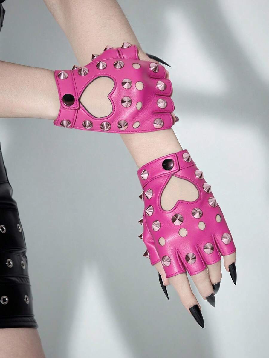 Goth 1 par de guantes sin dedos con remaches para mujer, adecuados para uso diario