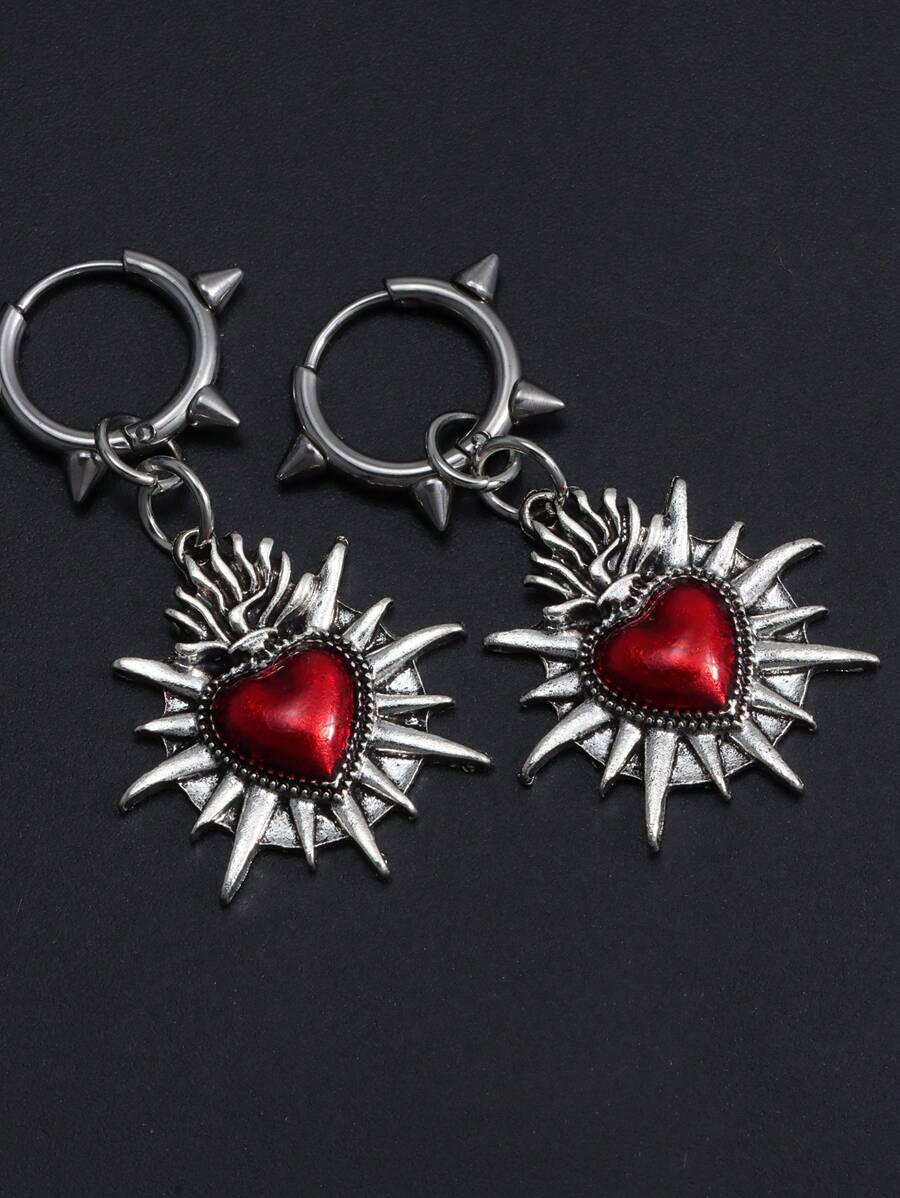 Goth 1 par de pendientes góticos y punk de estilo retro con forma de corazón y púas oscuras para mujeres, aptos para vacaciones, uso diario, Halloween, San Valentín