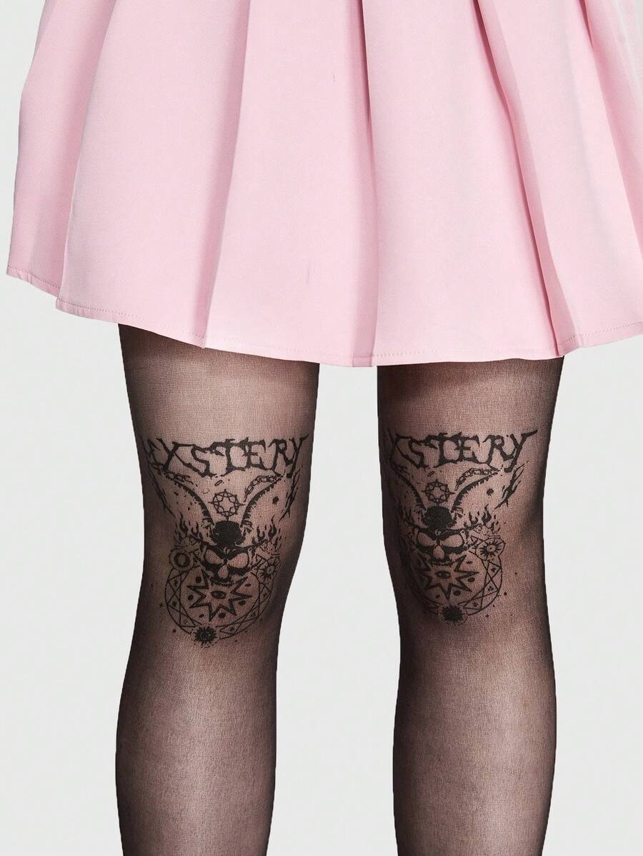 Goth Mujer 1 par Medias con letra de cráneo & con patrón de ojo