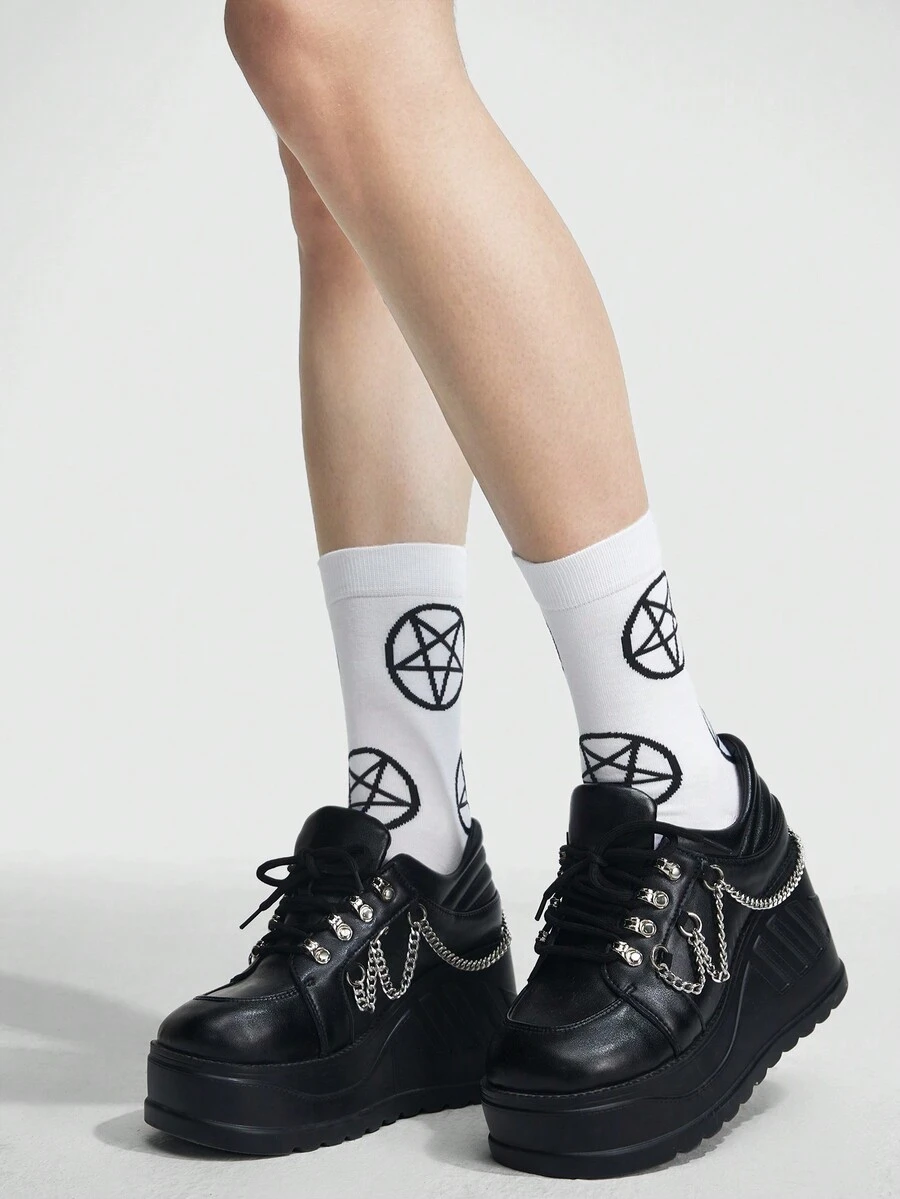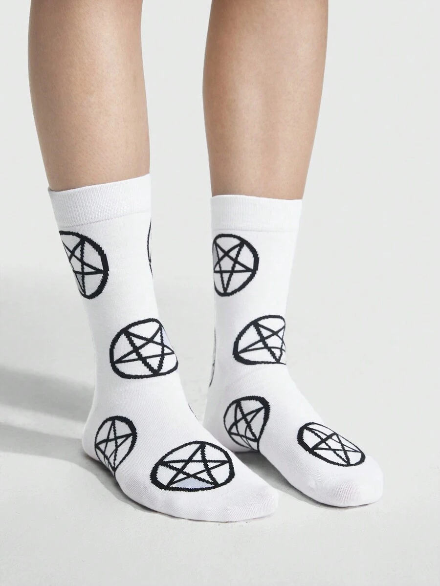 Goth Mujer 1 par Calcetines de tripulación con estampado de estrella