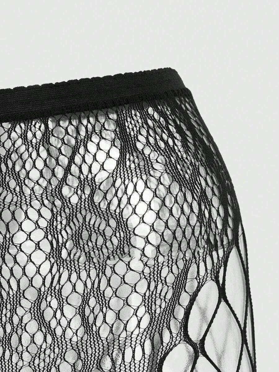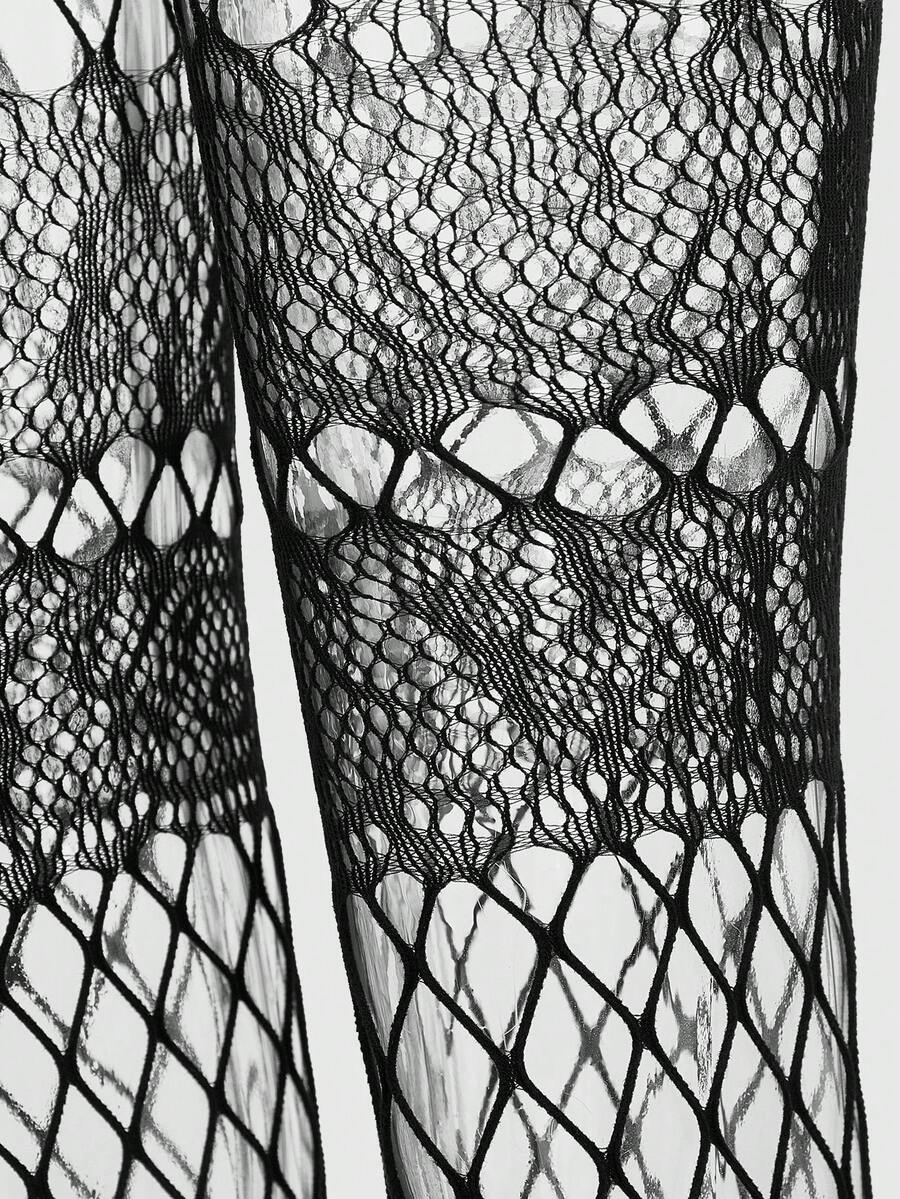 Goth 1 Par De Medias Negras De Jacquard De Red Con Diseño Falso De Liguero, Adecuado Para Todas Las Estaciones