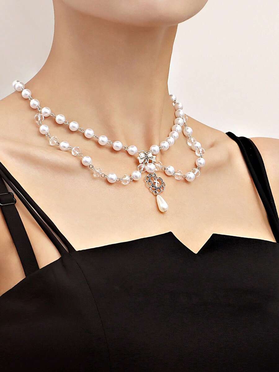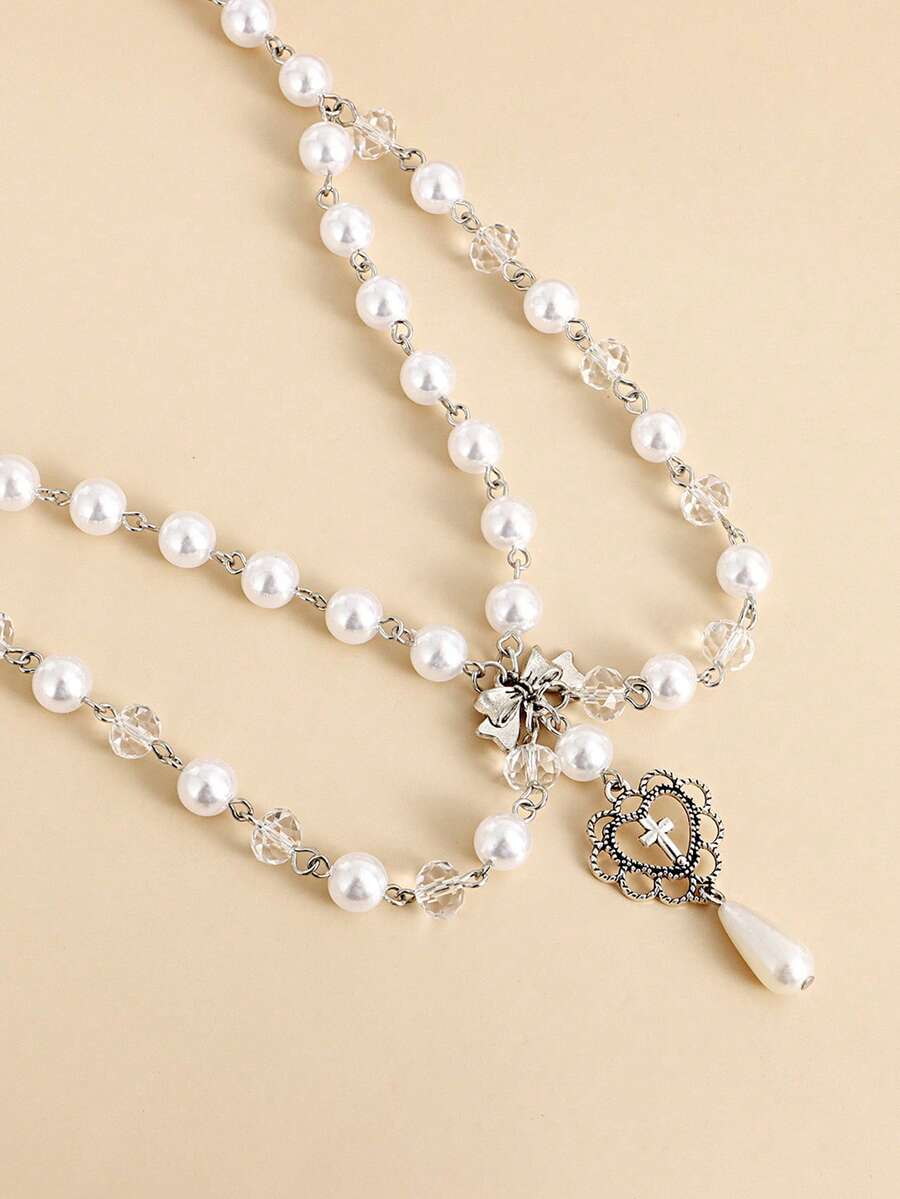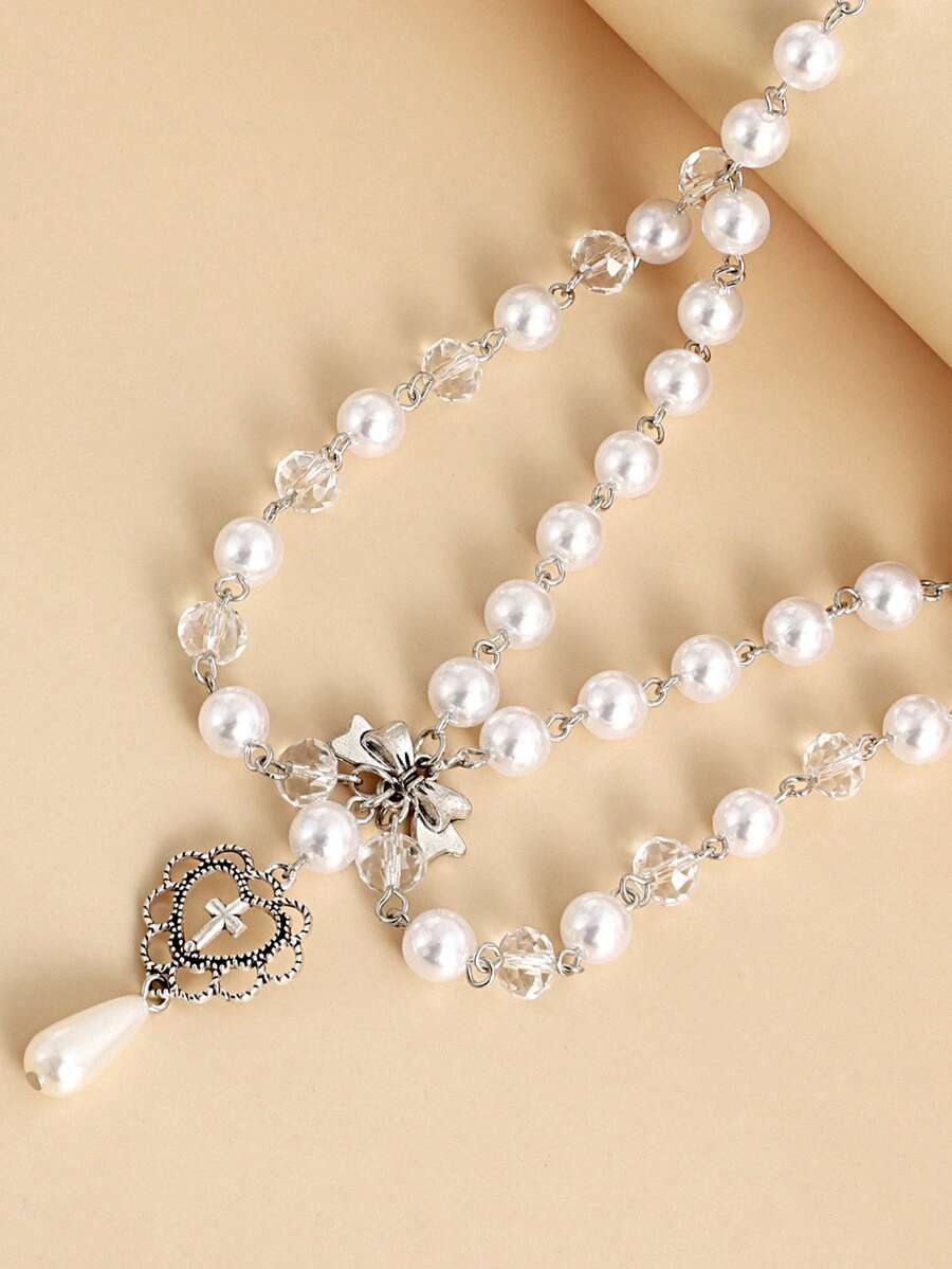 Goth 1 Pieza Elegante Collar De Aleación De Hierro Con Cruz Y Perla Artificial Decorativa Para Mujeres, Regalo Para Citas