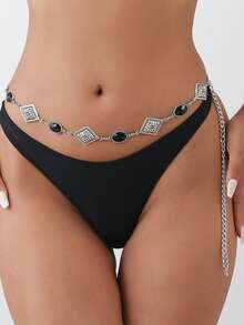 Goth Cadena de cintura con decoración geométrica para mujer, aleación de hierro, a la moda, para decoración diaria, 1 pieza