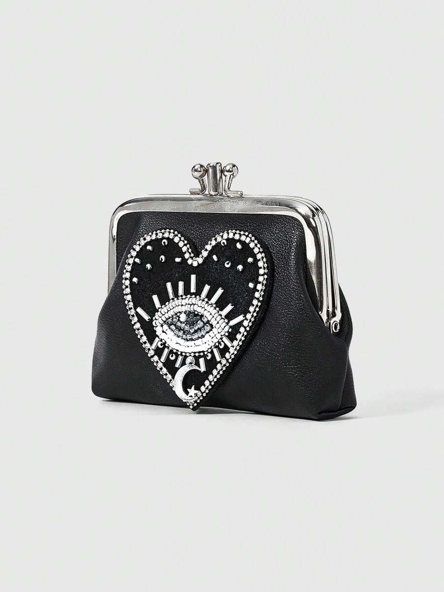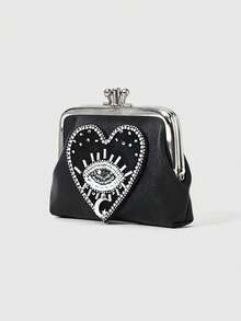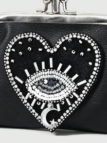 1pc Gothic Style Blue Eye & Red Heart Beaded Pu Leather Short Wallet For Women