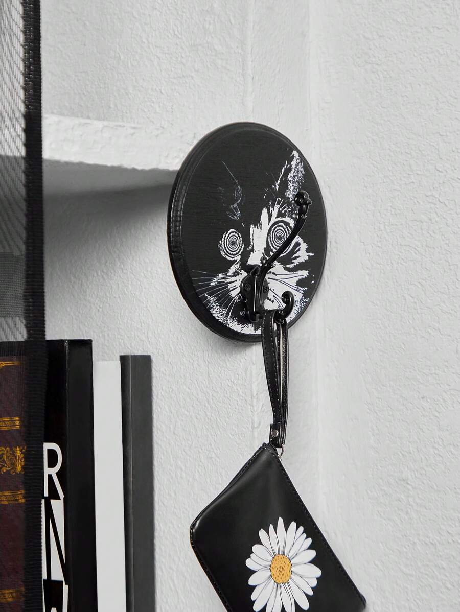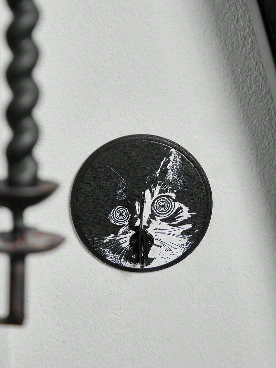 Goth 1 pieza Gancho de pared de madera con estampado de gato para decoración de Halloween