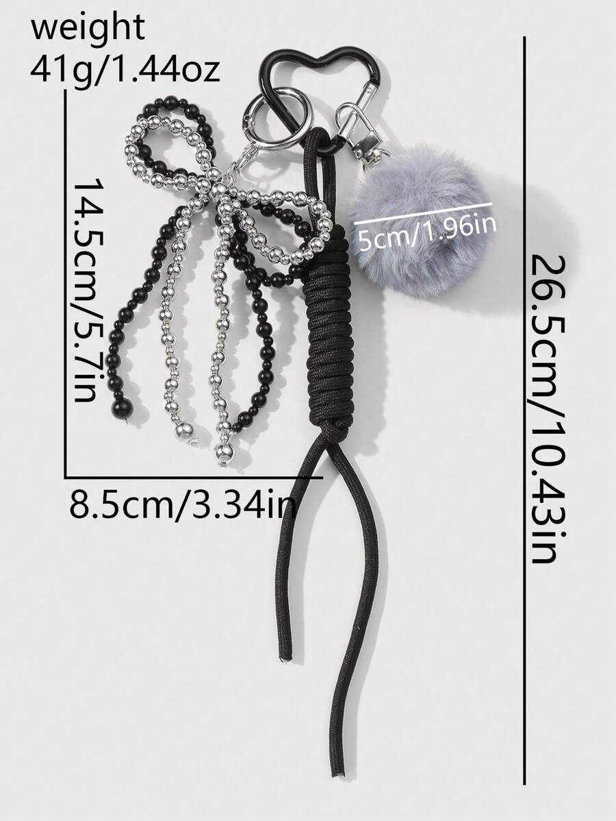 Goth 1 pieza de Accesorio colgante hecho a mano de estilo gótico elegante, con una bola esponjosa gris, CCB plateado, cuentas negras, cordón ajustable con lazo, llavero con forma de corazón, adecuado para mujeres, niñas, uso diario y regalo para festividades