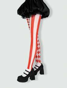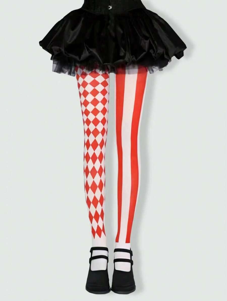 Goth 1 pieza Medias/Mallas/Leggings asimétricos y sexys de mujer de alta elasticidad a cuadros en blanco y negro