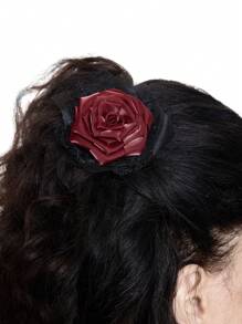 Goth 1 pieza Accesorio para el cabello con clip floral de rosa seca con encaje