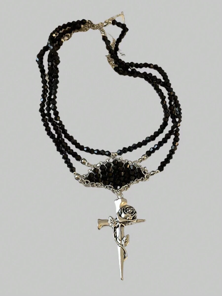Goth 1 pieza Collar vintage de capas con cuentas de cristal oscuro para mujeres