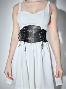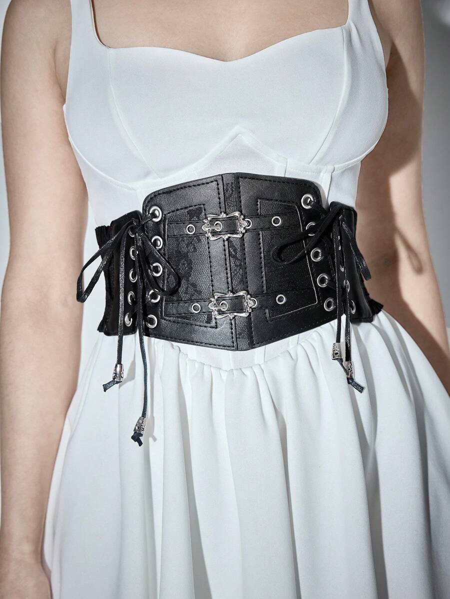 Goth 1 pieza Cinturón de corsé con cordones para mujer, uso diario casual