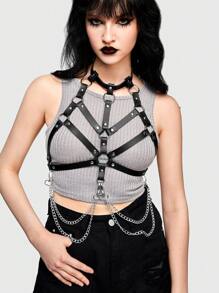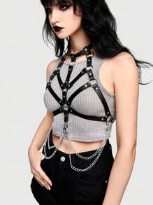 Goth 1 Pieza Correa Para El Cuello Decorada Con Cadena Negra Para Mujer Para Uso Diario