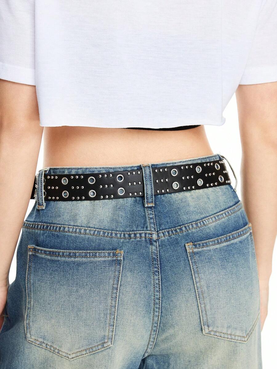 Goth 1 pieza Cinturón negro de mujer estilo punk con hebilla de doble ventilación de remaches, accesorio versátil para el uso diario