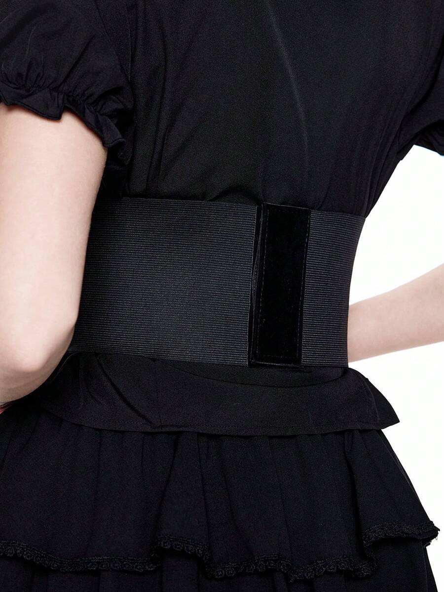 Goth 1 pieza Cinturón de mujer con diseño de telaraña de esqueleto y cruz estilo gótico, de tela de terciopelo negro con elástico en la cintura, accesorio de vestir para uso diario