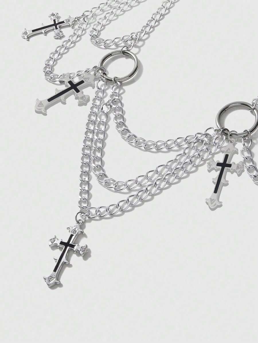 Goth 1 pieza Cinturón de cadena de doble capa de estilo gótico para mujer, con decoración de cruz plateada y negra y 3 hebillas ajustables, perfecto para vestirse o para el uso diario, Halloween