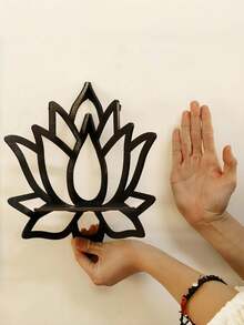 Goth 1 pieza Estantería de pared tallada en madera con diseño de loto, decoración de pared minimalista, organizador del hogar estilo bohemio, estantería rústica para dormitorio, sala de estar, decoración del hogar