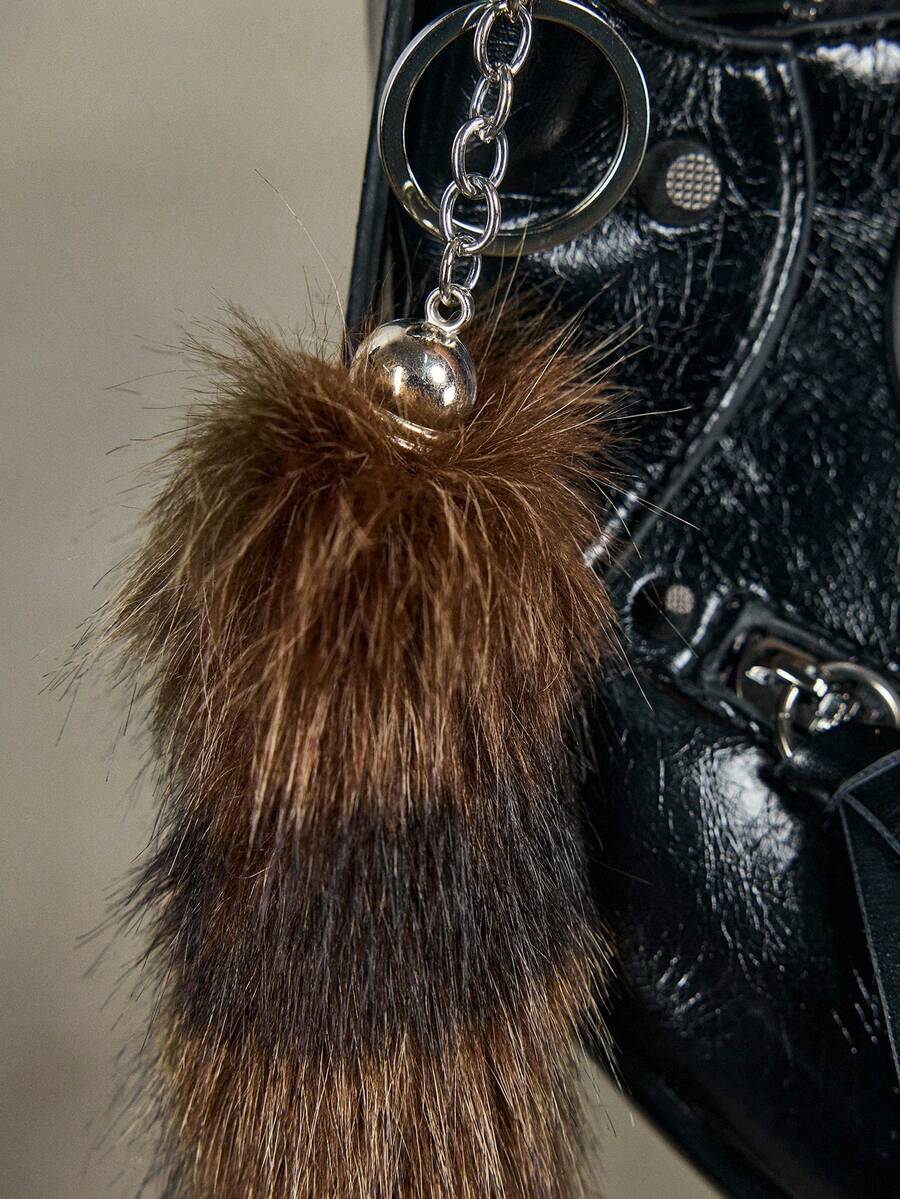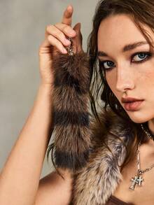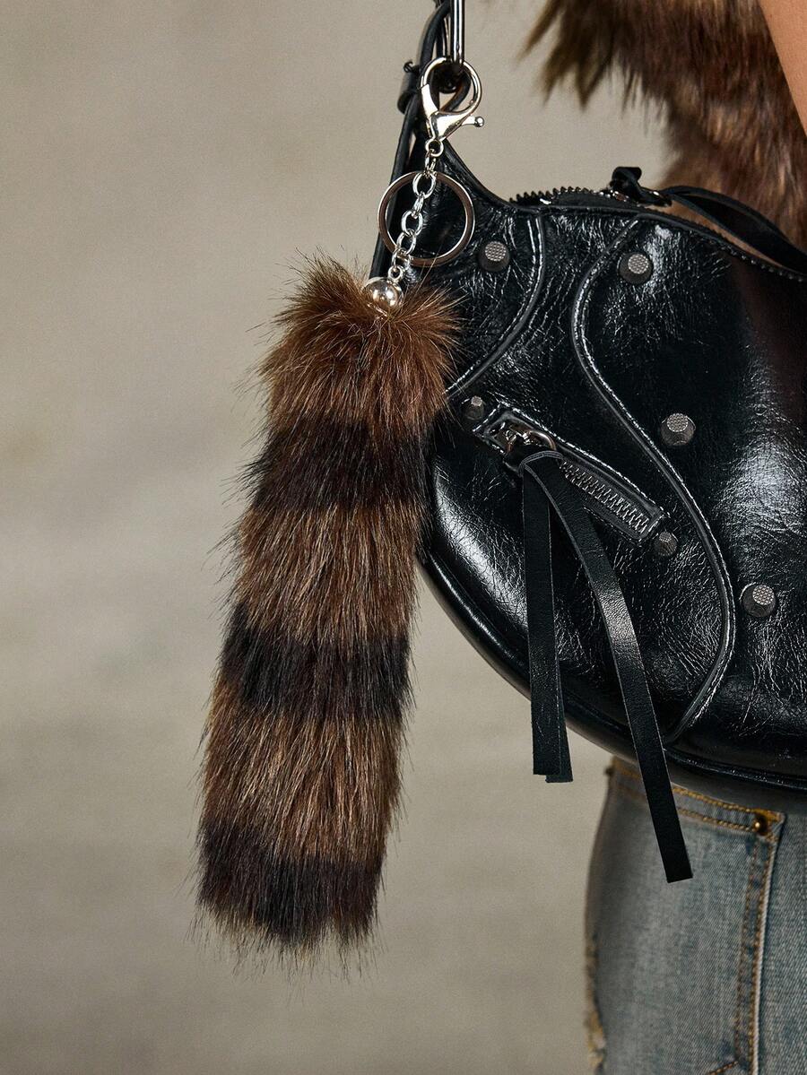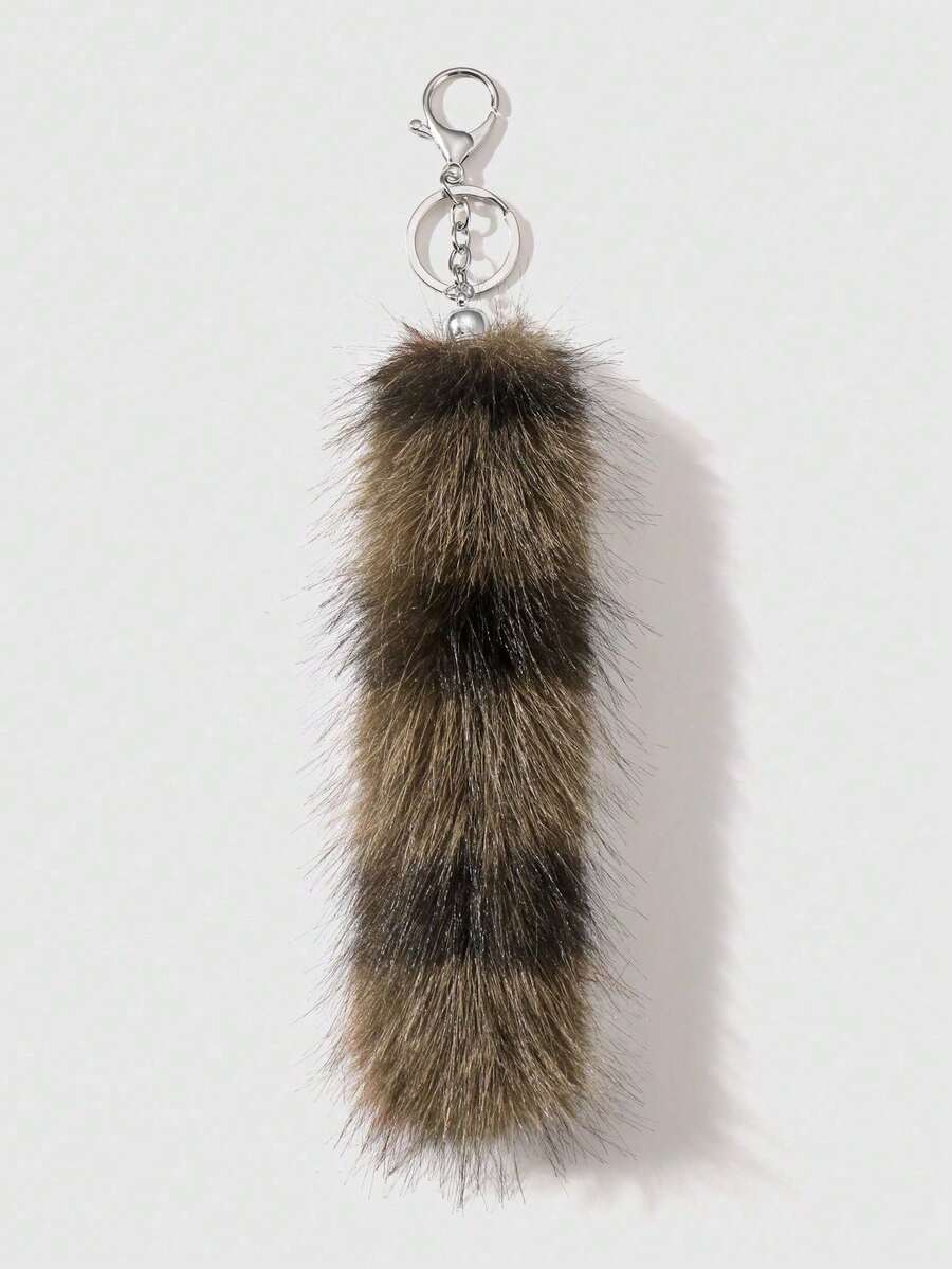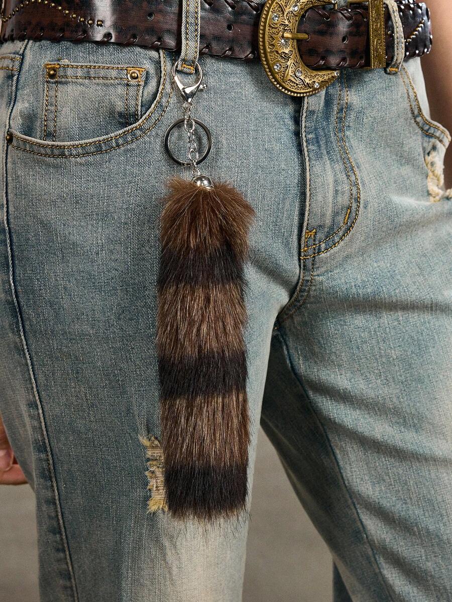 Goth 1 pieza Llavero/Accesorio de bolso con cola de mapache/zorro degradado a rayas de estilo retro Y2K de alta calidad, adecuado para cosplay, uso diario, regalos