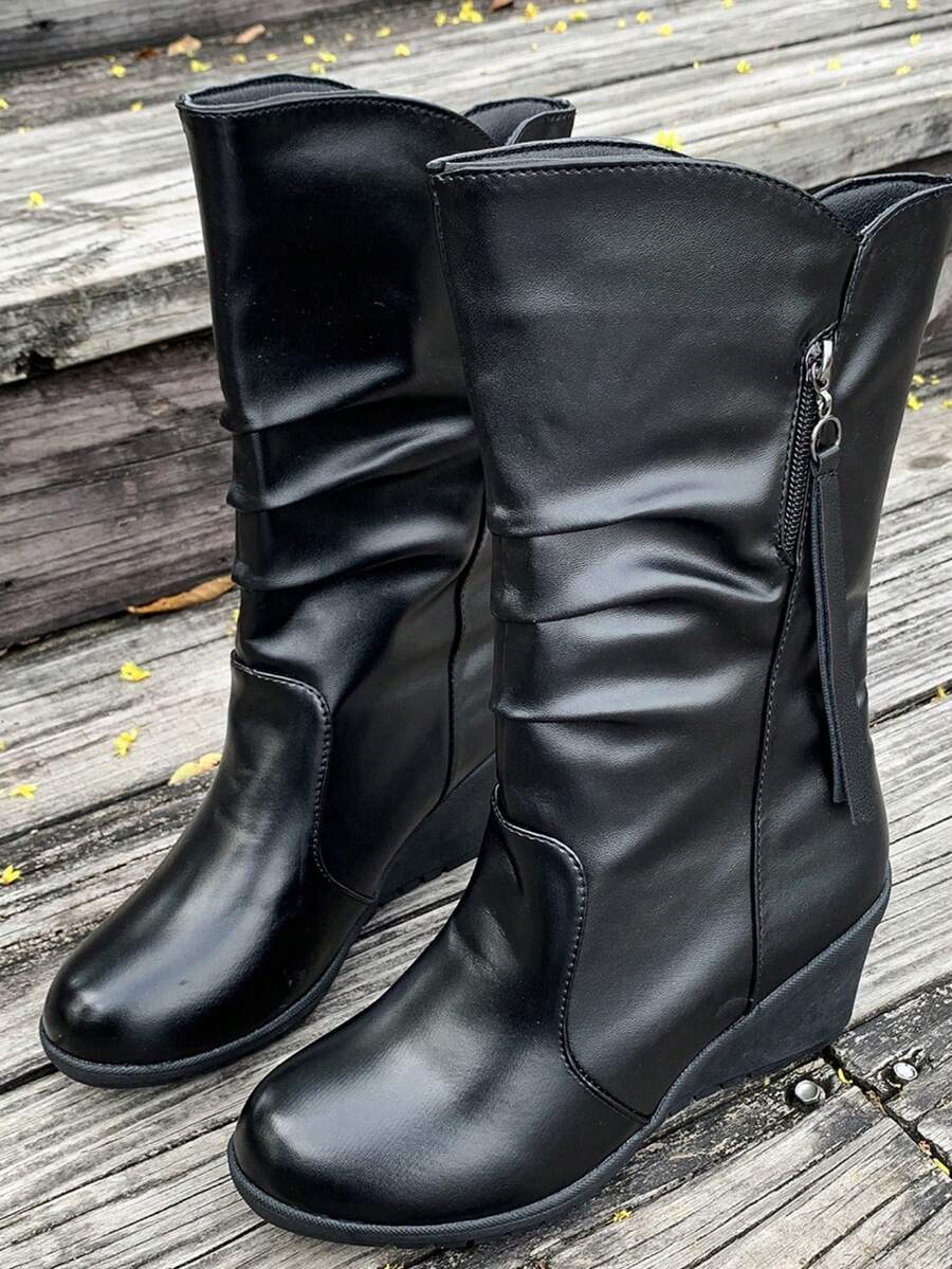 Goth Botas de tacón de cuña a media pantorrilla, moda para mujeres otoño-invierno 2024