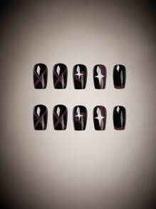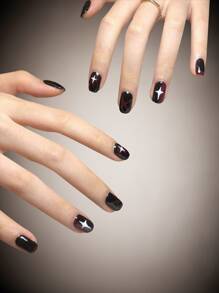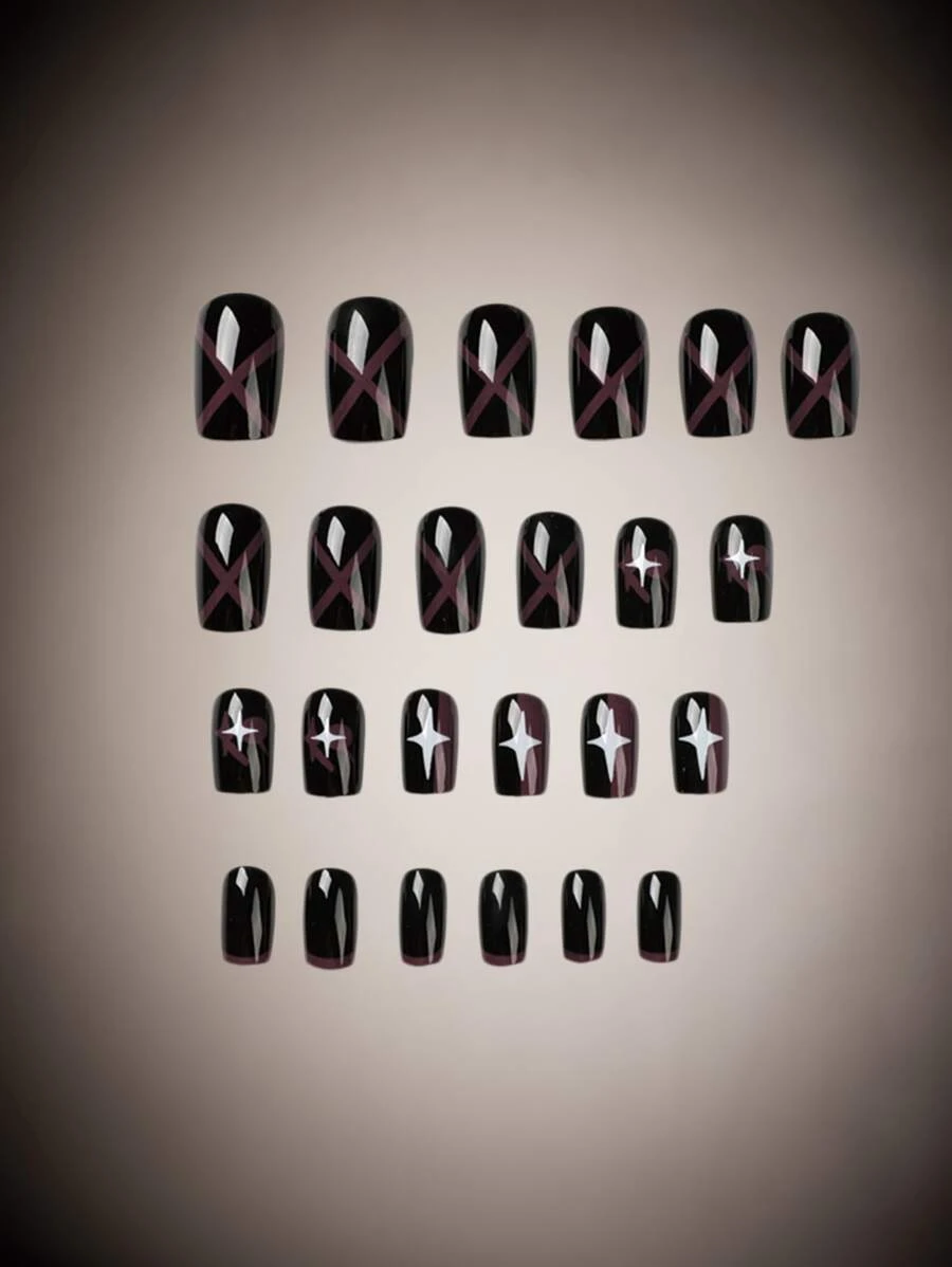 Goth 24 piezas corto Uñas postizas cuadradas & 1 hoja cinta