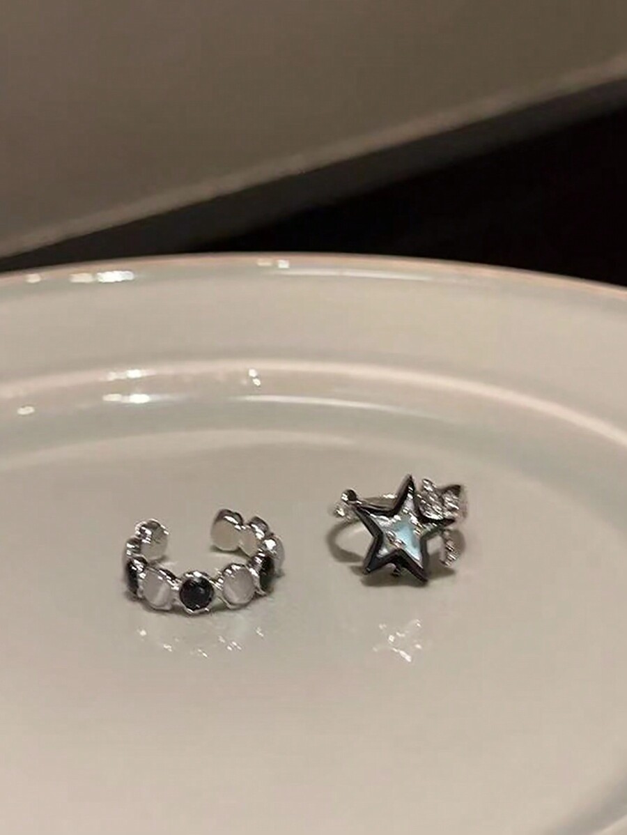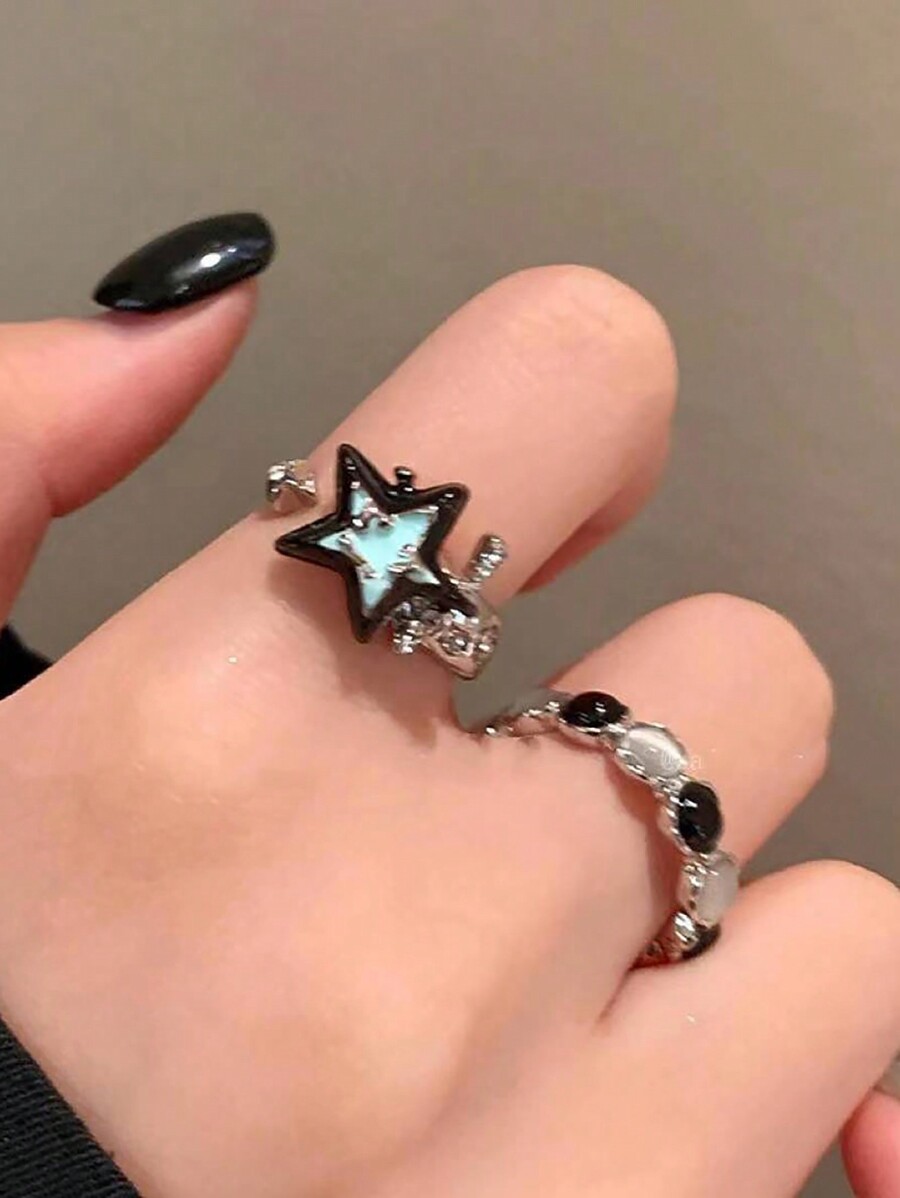 Goth Anillo de decoración de estrella de aleación de hierro a la moda, 2 piezas, para mujer, para decoración diaria