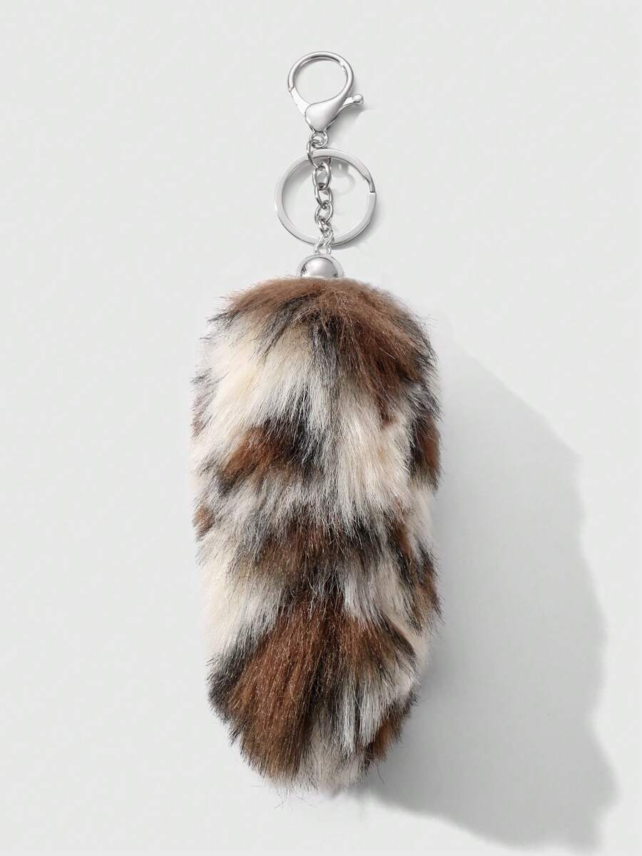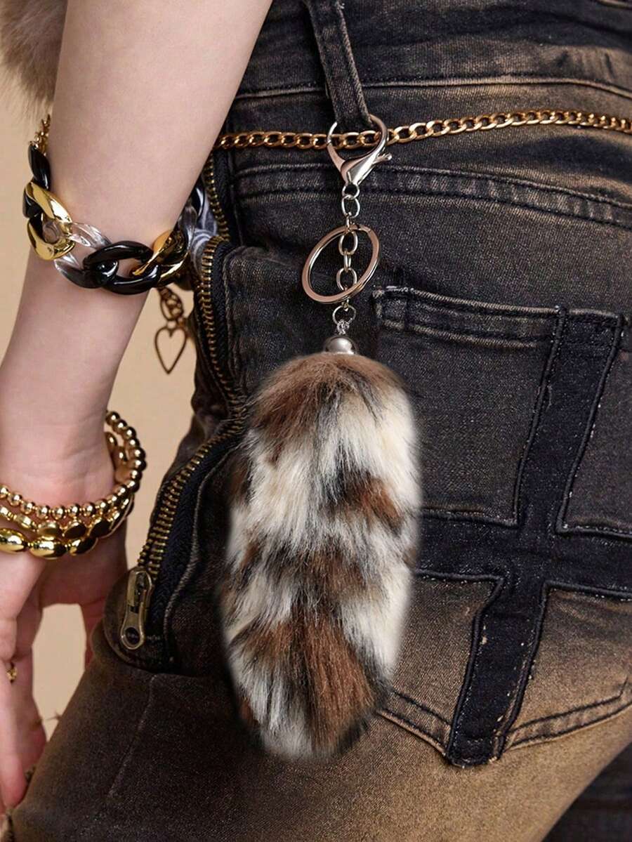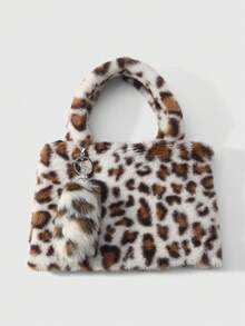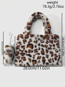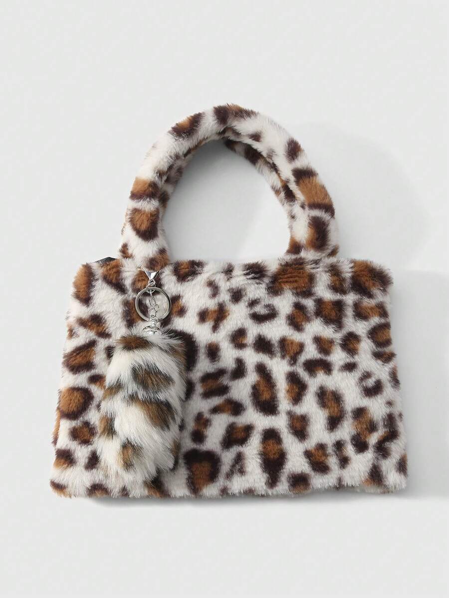 Goth Set de 2 piezas que incluye: 1) Bolso minimalista, casual y versátil con estilo retro y universitario, con estampado de leopardo o tigre de piel de conejo sintética, adecuado para uso diario y como regalo. 2) Llavero con cola de leopardo sintética esponjosa y mini animal, accesorio para bolso