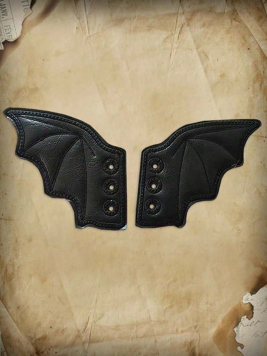 Goth Set de 2 adornos de zapatos con forma de ala negra y remaches, estilo punk para mujer, para el otoño