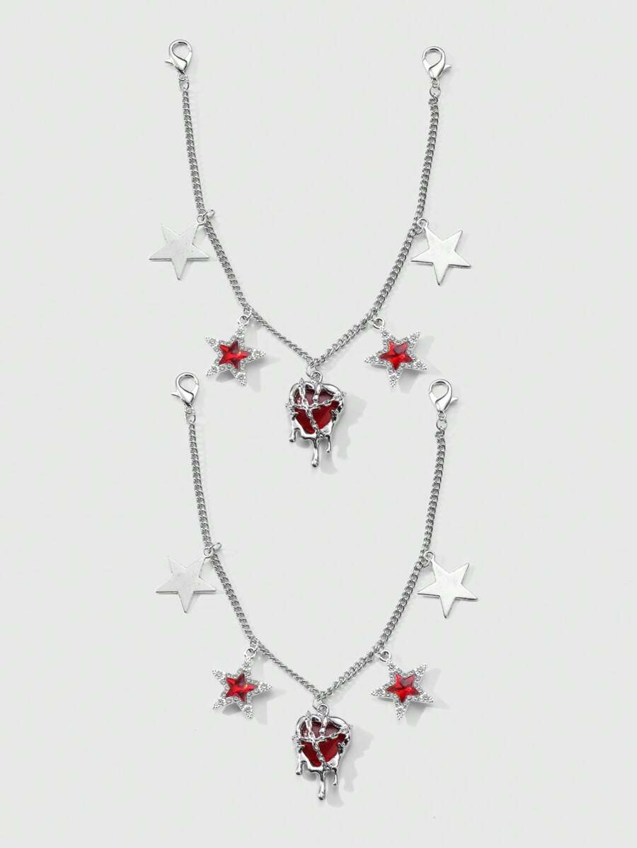 Goth Set de 2 dijes con forma de estrella llenos de líquido con cadena de plata de estilo retro moderno y brillante, adecuado para uso diario de mujeres/niñas, regalo para fiestas