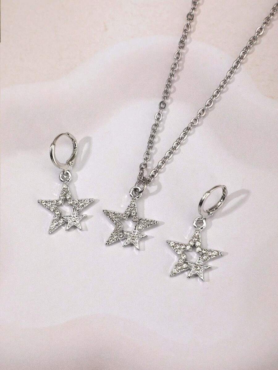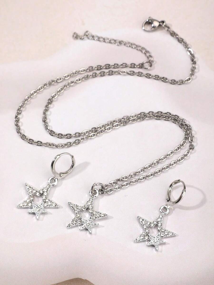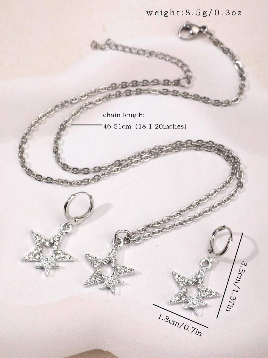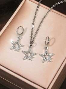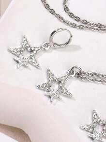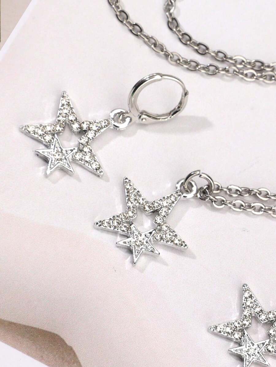 Goth Conjunto De Joyas Para Mujeres De Y2k En Forma De Estrella Con Forma De Collar Y Aretes Con Diamantes De Imitación Incrustados En 3 Piezas