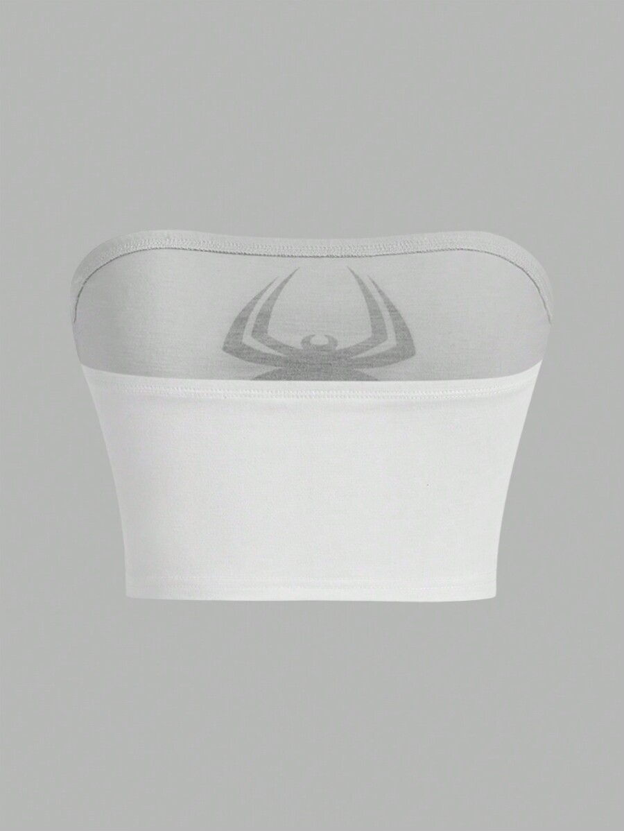Goth 3piezas/set Conjunto De Tops De Pijama Para Mujeres Góticas Sin Tirantes Con Estampado De Araña, Calavera Y Estrella