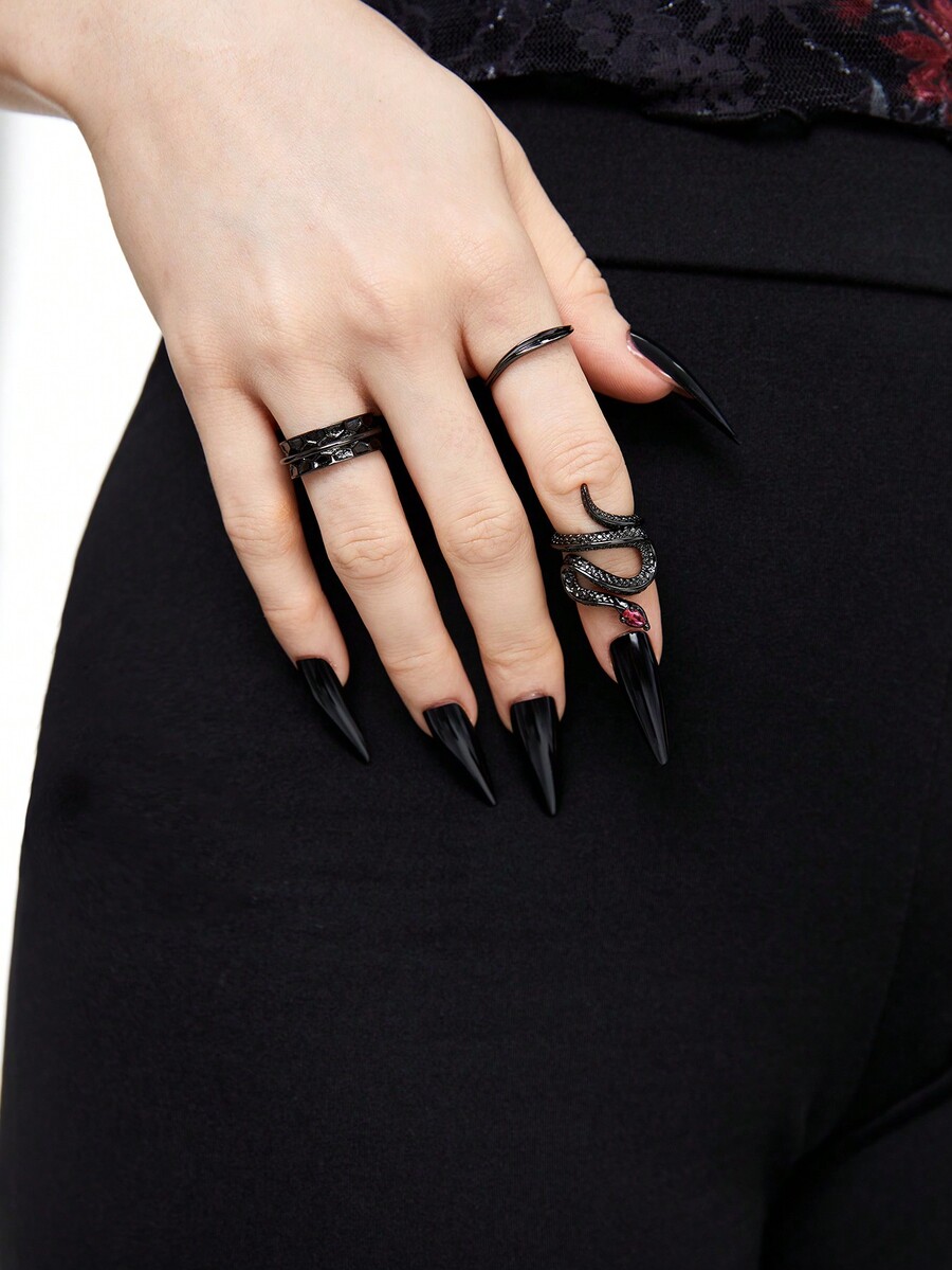 Goth 3 piezas/Conjunto Anillos de mujer personalizados vintage asimétricos de forma de serpiente abierta