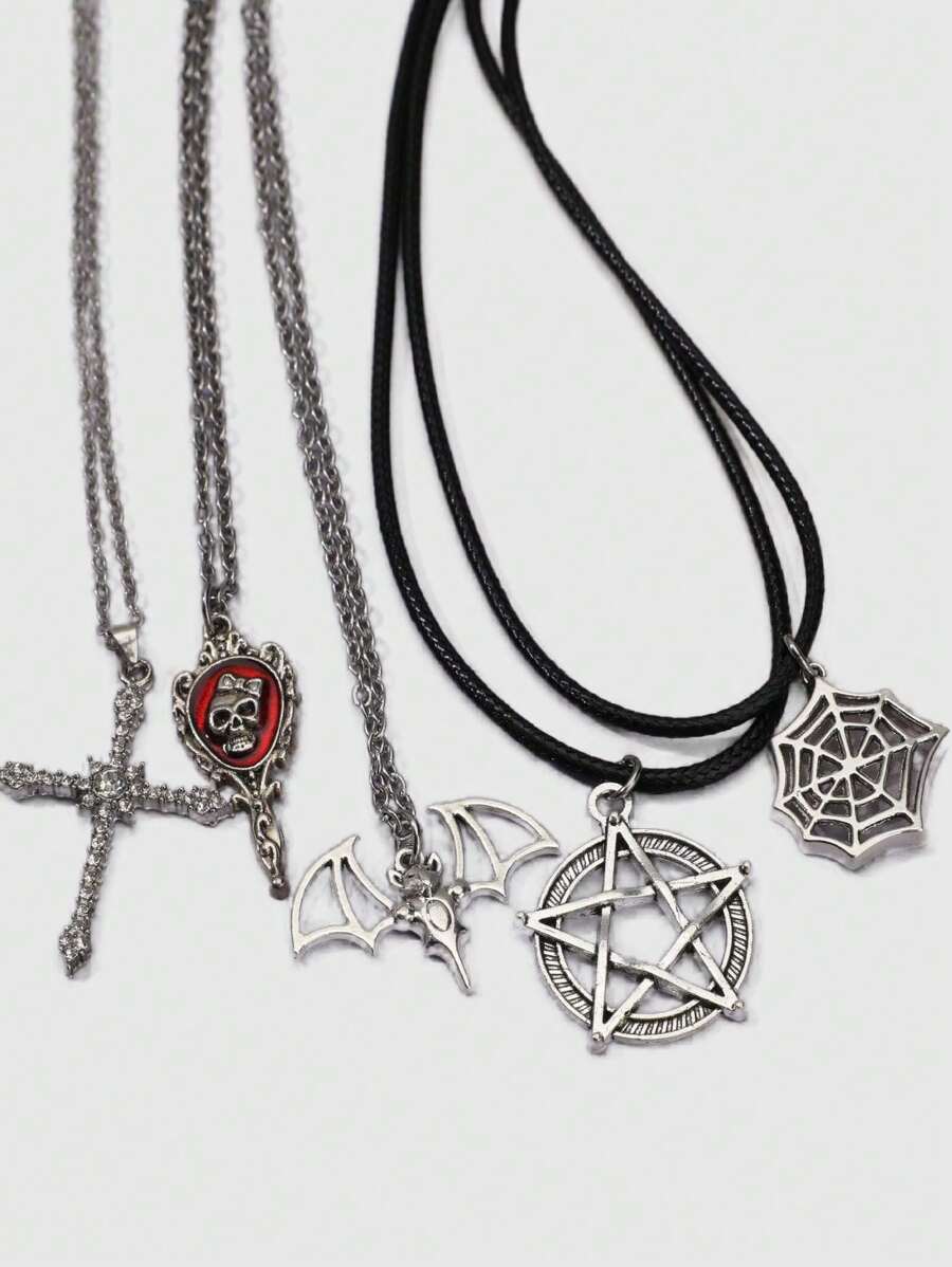 Goth Juego de 5 piezas de collar con colgantes retro góticos de cruz, estrella de strass, araña y calavera