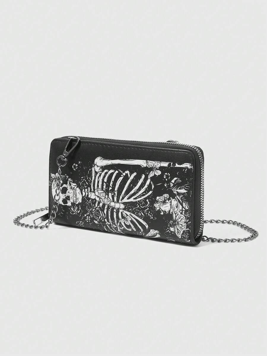Goth Cartera con cadena con diseño de calavera de rosa negra, monedero de estilo oscuro y moda versátil