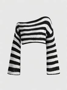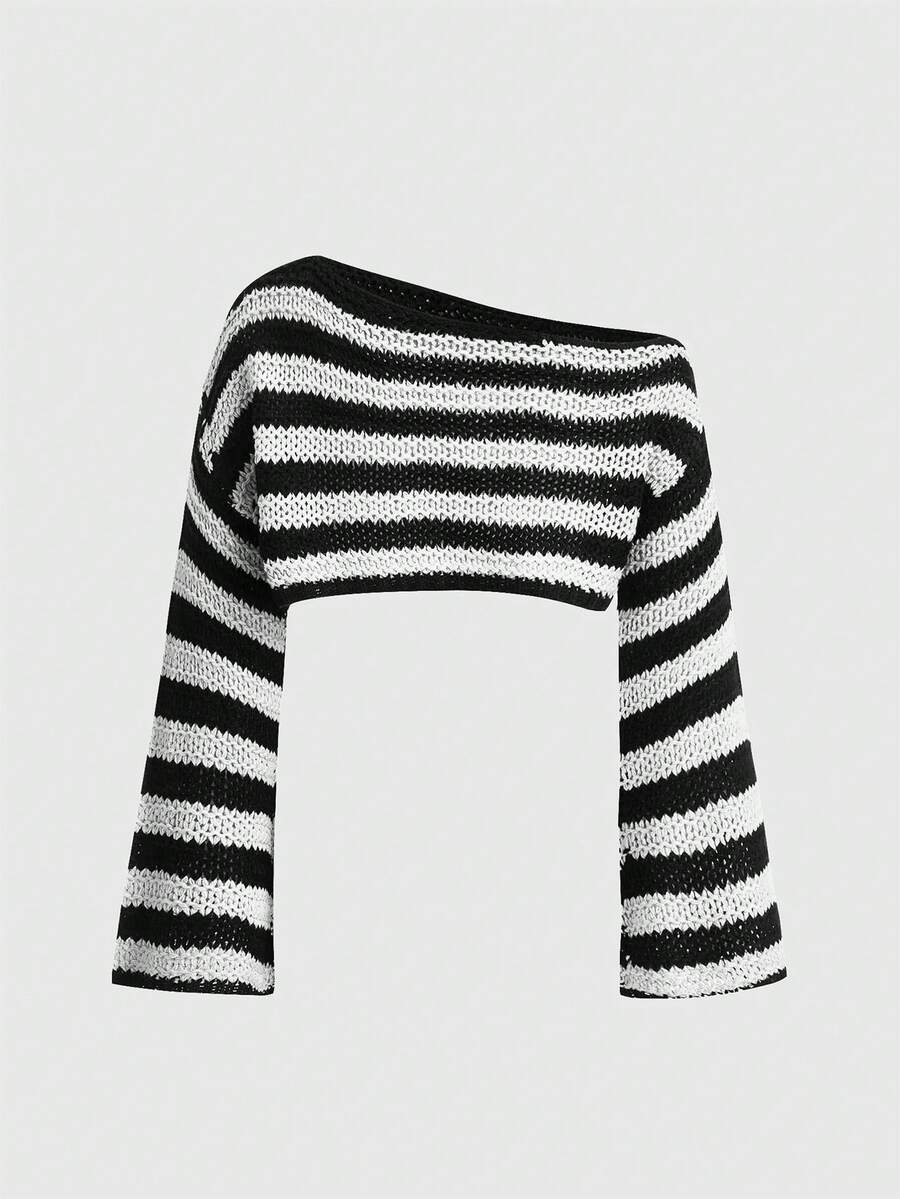 Goth Suéter corto a rayas con cuello asimétrico, informal, de otoño