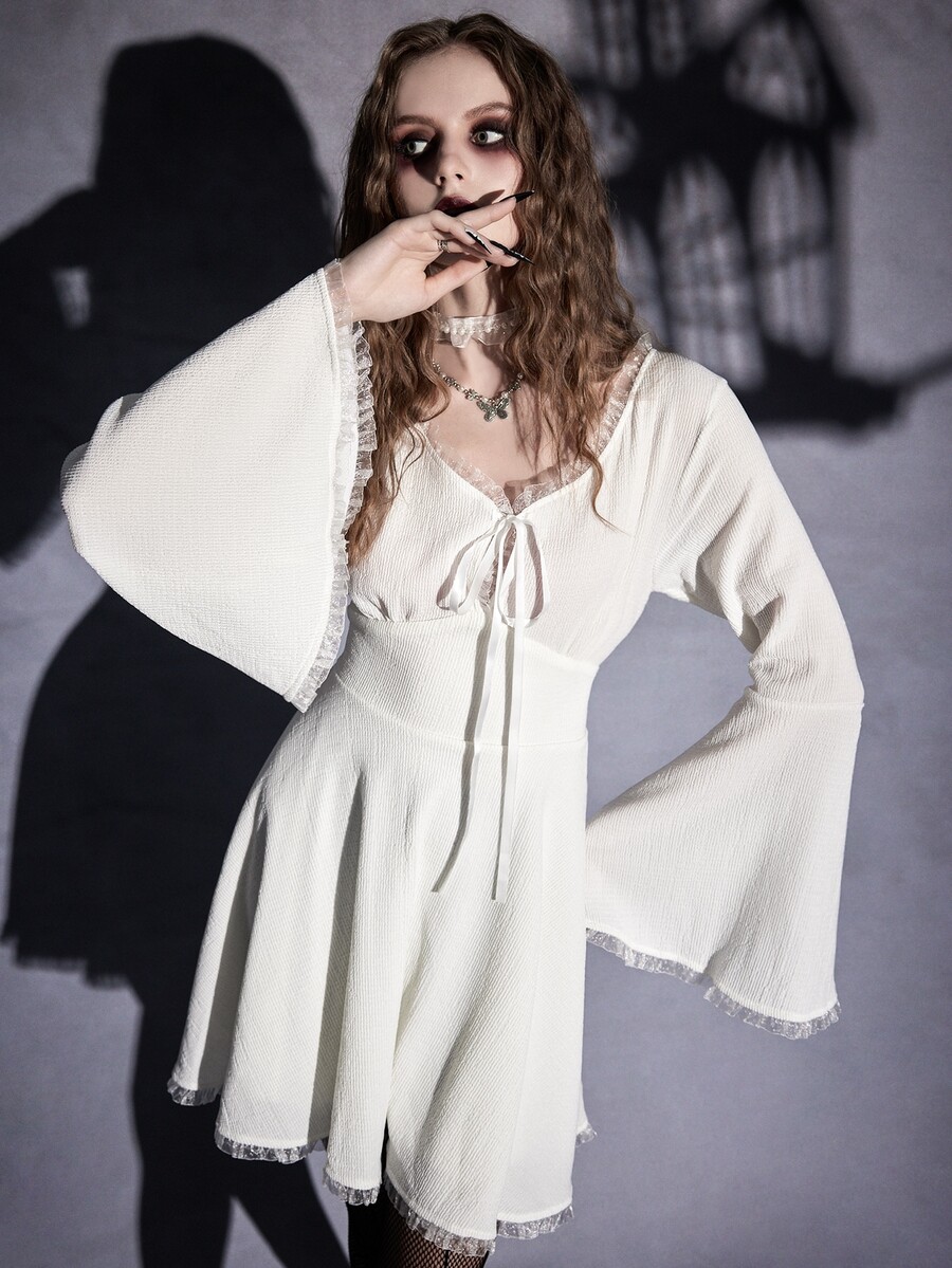 Goth Vestido con encaje en contraste con cordón delantero