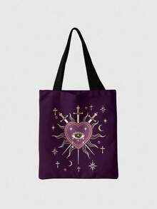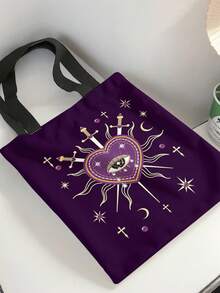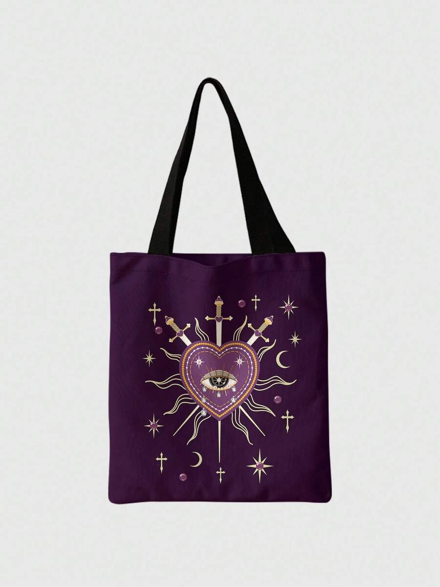 Goth Bolsa de tela reutilizable con estampado de ojo, espada, corazón, estrella y luna en estilo de corte, mochila de moda, bolso multiusos, bolsa de tela con estampado, bolso de hombro con estampado