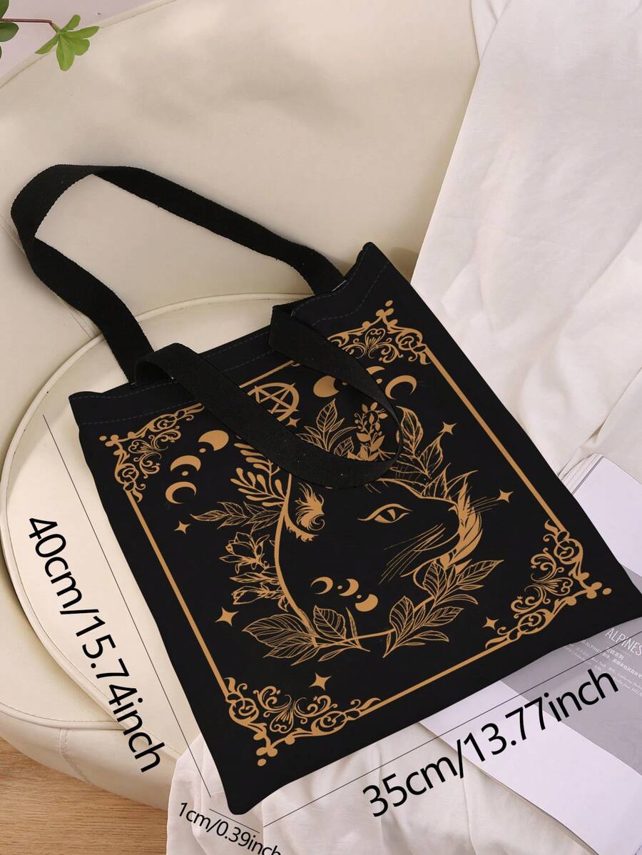 Goth Bolsa de lona para el hombro con estampado de gato impreso a doble cara, de diseño creativo