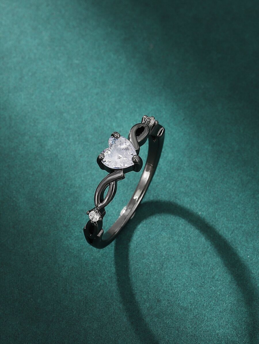 Goth Anillo zirconia cúbica con adorno de corazón