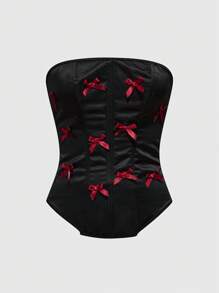 Goth Crop top con detalles de lazo y espalda abierta estilo boudoir