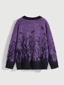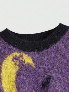 Goth Suéter inspirado en el cuento de hadas oscuro con luna púrpura, parte superior de punto suave con ambiente acogedor, otoño/invierno