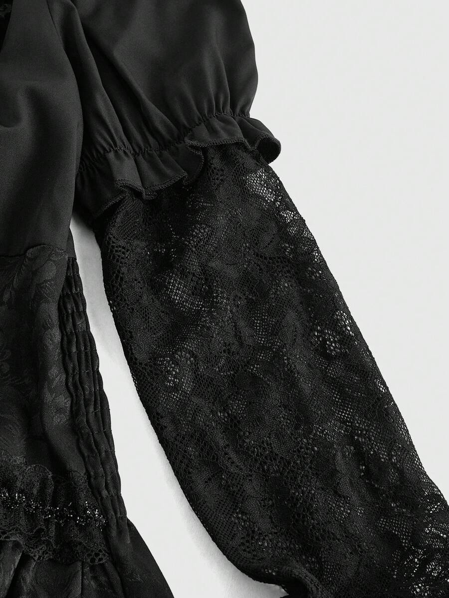 Goth Blusa de dama de ajuste ceñido con mangas de campana de encaje, estilo palacio gótico oscuro