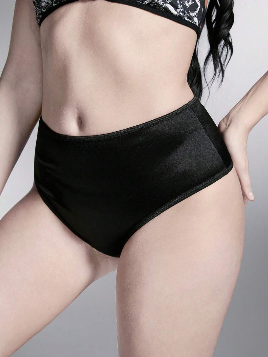 Goth Pantaleta sexy de satén jacquard con estampado de pentágrama gótico oscuro y abertura en la entreperna