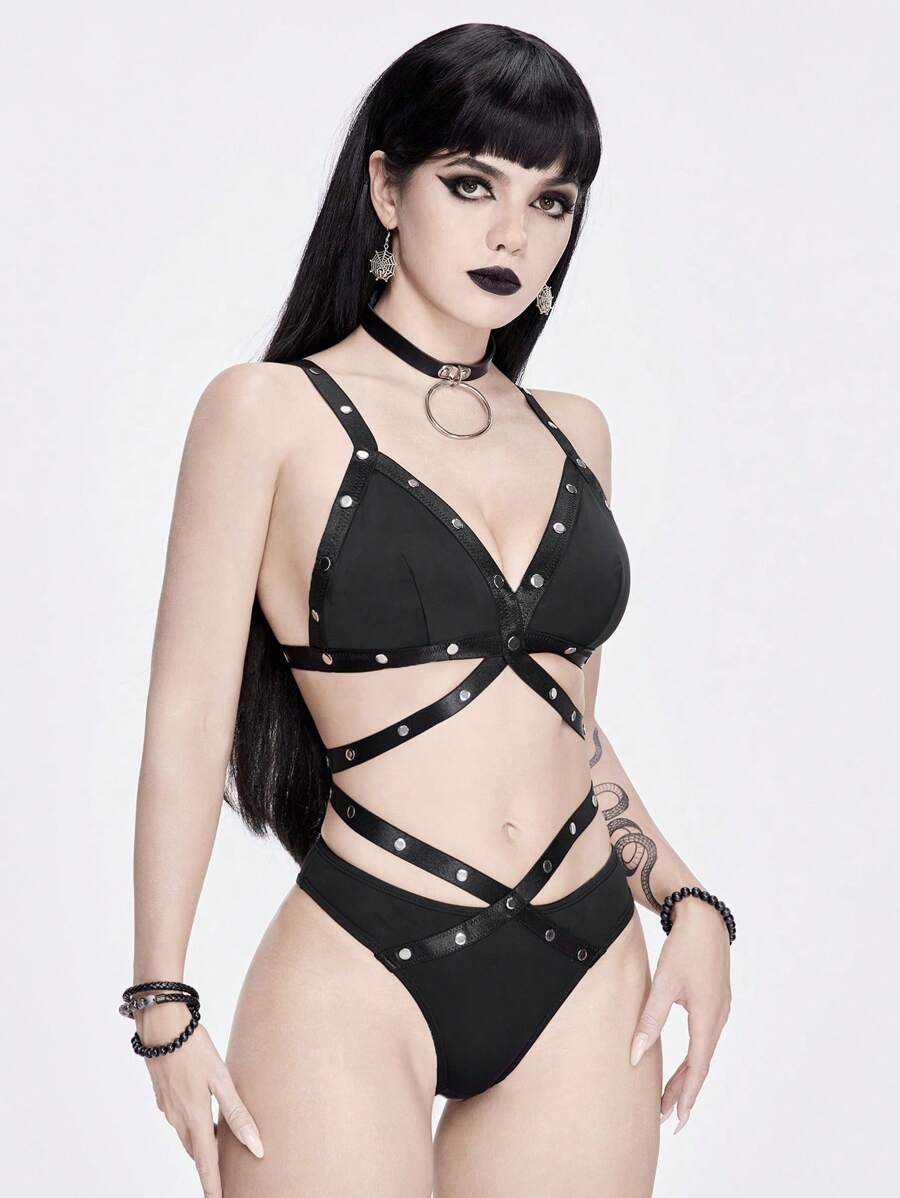 Goth Bikini de estilo gótico oscuro con remaches para el verano