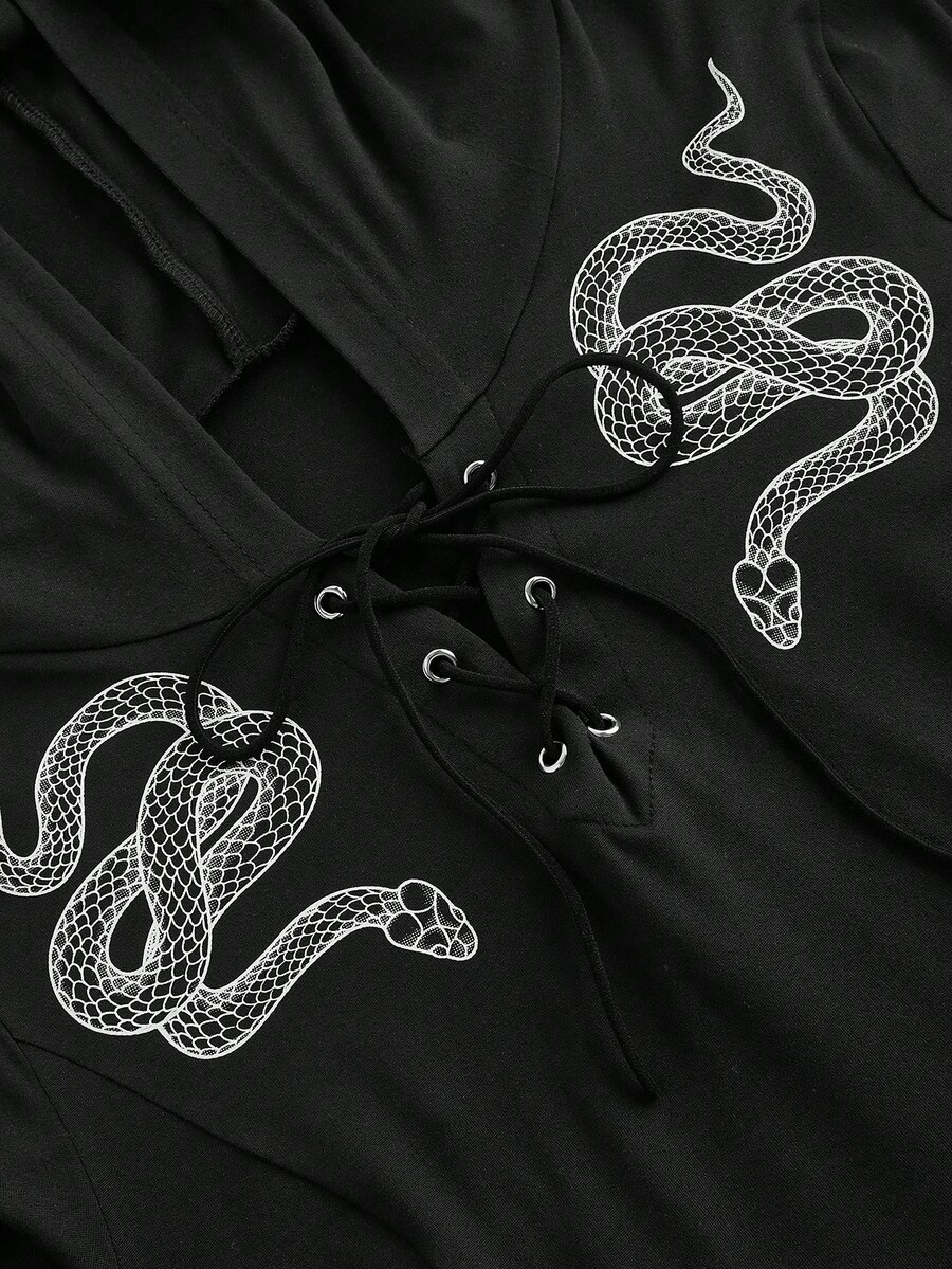 Goth Camiseta con capucha para mujer de manga asimétrica con estampado de serpiente oscuro