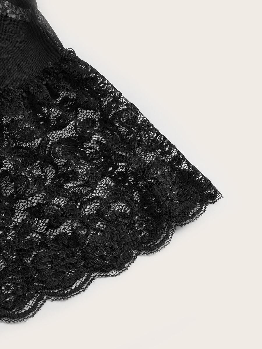 Goth con encaje floral Vestido babydoll & Tanga con 1 par mangotes