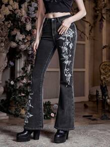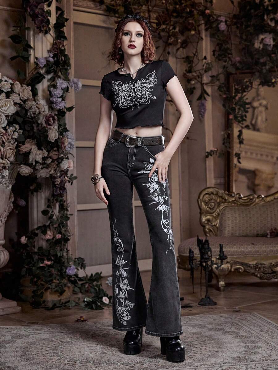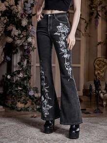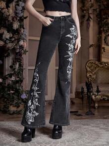 Goth Jeans de pierna amplia con estampado floral