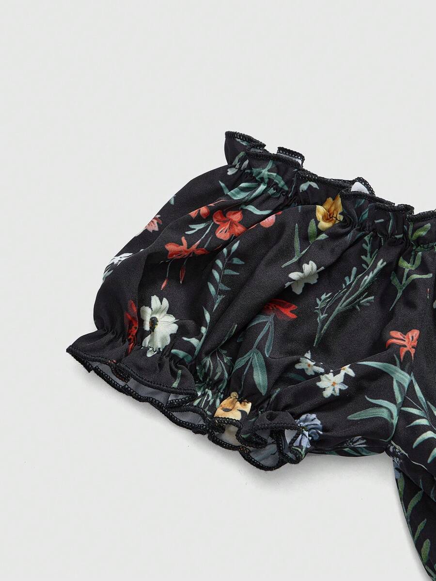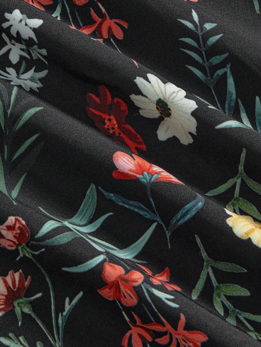 Goth Vestido de mujer con estampado floral, cintura con nudo, hombros descubiertos, mangas abullonadas y bajo asimétrico